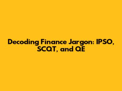 Hey finance enthusiasts! Ever stumbled upon acronyms like IPSO, SCQT, and QE in the financial world and felt a bit lost? Don't worry, you're not alone! These terms, while sounding complex, are actually quite important for understanding how the financial markets work. Let's break them down, making sure everyone can get a handle on what they mean and why they matter. We'll explore these concepts in a way that's easy to grasp, without getting bogged down in overly technical jargon. So, grab your favorite beverage, sit back, and let's dive into the fascinating world of finance!
