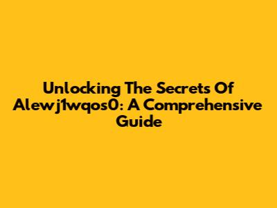Unlocking The Secrets Of Alewj1wqos0: A Comprehensive Guide