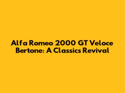 Alfa Romeo 2000 GT Veloce Bertone: A Classic's Revival