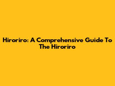 Hiroriro: A Comprehensive Guide To The Hiroriro