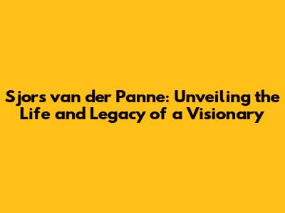 Sjors Van Der Panne: A Deep Dive Into His Life And Work