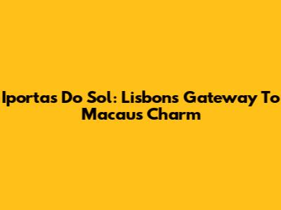 Iportas Do Sol: Lisbon's Gateway To Macau's Charm